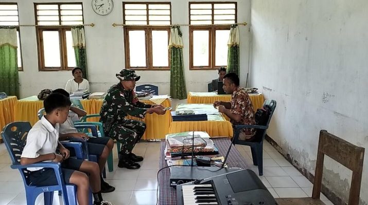 Gentra News NTT – Belu, Satgas Yonif 741/GN Pos Kewar membayar Sumbangan Pembinaan Pendidikan (SPP) dua anak sekolah di SMP 1 Atap Kewar, Kecamatan Lamaknen, Kabupaten Belu. Selasa (10/12/2024).
