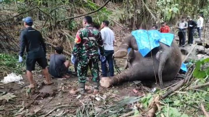 “Proses evakuasi menggunakan alat berat Excavator dan disaat proses evakuasi mengalami kesulitan dikarenakan faktor medan yang begitu sulit dan curam serta licin dikarenakan pasca hujan dan banjir di lokasi tempat ditemukannya mayat Gajah tersebut,” jelasnya.