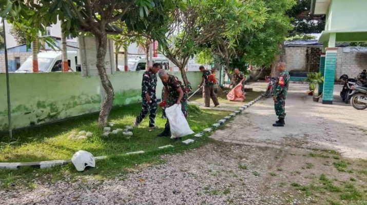 Gentra News NTT – KODIM 1605/BELU, Dalam rangka menciptakan suasana perkantoran yang indah dan nyaman, Anggota Koramil 1605-04/Betun melaksanakan kegiatan pembersihan pangakalan sekitar Kantor Koramil, Rabu (18/12/2024).