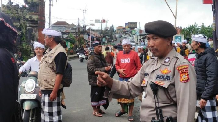 Kapolsek Kintamani Bersama anggota melakukan pengamanan dan pengaturan arus lalulintas untuk mencegah terjadinya kemacetan dan gangguan keamanan selama proses penjeputan jenasah datang dari Denpasar di jemput oleh warga di Parkiran Tunon Pura Batur Kintamani menuju Kediaman Jro Gede Batur Alitan di Sebelah Utara Pura Batur Kintamani. Ia bersama beberapa warga berjaga di sepanjang jalan yang dilalui jenazah menuju Kediaman Jro gede Batur Alitan untuk di semayankan sentara menunggu proses lebih lanjut untuk upacara pelebon.