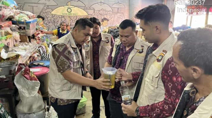 Gentra.co.id Bali – Jelang hari raya Idul Fitri Ditreskrimsus Polda Bali sidak ke Pasar Badung jl gajah mada Denpasar, terkait takaran kemasan minyak goreng merek Minyakita, selasa 11/3/2025.