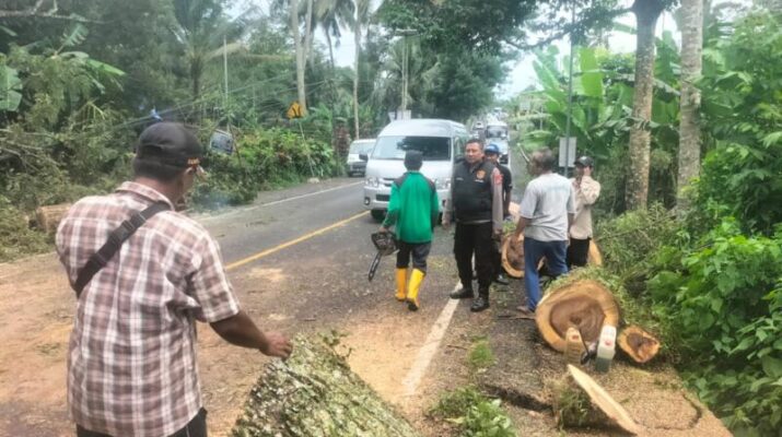 Gentra.co.id Bali – Polres Tabanan – Polsek Baturiti, Sabtu 22 Maret 2025. Guna tetap menciptakan situasi arus lalulintas di wilayah hukum Polsek Baturiti agar tetap aman dan lancar, Sabtu (22/03/25) mulai pukul 13.30 s.d. 15.30 Wita, Personil Polsek Baturiti di pimpin langsung oleh Kapolsek Baturiti Kompol I Komang Agus Sudarsana, S.E. bersinergi dengan warga masyarakat lakukan evakuasi pohon jenis kayu suar yang tumbang menutupi jalan raya utama jurusan Denpasar – Singaraja yaitu tepatnya di Banjar Belah Desa Luwus Kecamatan Baturiti Kabupaten Tabanan.