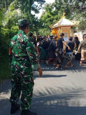 Buleleng, Bali – Kegiatan pengabenan almarhum Nyoman Suyasa, warga Desa Tampekan, bertempat di Setra Adat Tampekan, Kecamatan Banjar, Kabupaten Buleleng. Babinsa Desa Tampekan, Sertu Gusti Putu Satriawan bersama Bhabinkamtibmas setempat turut hadir dan melaksanakan tugas pengamanan guna memastikan upacara adat berjalan dengan tertib dan khidmat (Senin, 14/4)