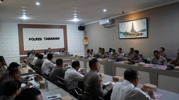 Polda Bali – Polres Tabanan – Humas Tabanan. Senin, 14 April 2025. Polres Tabanan mengikuti kegiatan Analisa dan Evaluasi (Anev) Bulanan Program Beyond Trust Presisi Triwulan I Tahun 2025 secara daring bersama Posko Presisi Mabes Polri. Kegiatan yang berlangsung dari pukul 12.00 hingga 13.10 Wita ini digelar di Ruang Vicon Sarja Arya Racana Polres Tabanan dan dihadiri oleh Kapolres Tabanan AKBP Chandra C. Kesuma, S.I.K., M.H., Wakapolres, para PJU, Kapolsek jajaran, serta para penanggung jawab dan operator program.