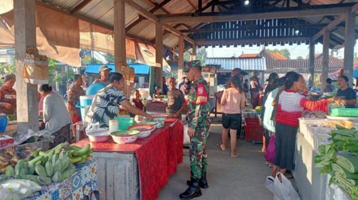 Peltu I Wayan Sujana secara aktif berdialog dengan masyarakat guna mengetahui perkembangan situasi di lapangan, serta mengecek langsung ketersediaan bahan pokok yang menjadi kebutuhan utama jelang perayaan hari besar keagamaan. “Kami hadir di tengah masyarakat untuk memastikan kondisi pasar tetap aman, nyaman, dan harga kebutuhan pokok tetap stabil. Sekaligus memberikan imbauan agar tetap waspada terhadap potensi gangguan keamanan maupun tindak kejahatan,” ujar Babinsa Desa Tamanbali.