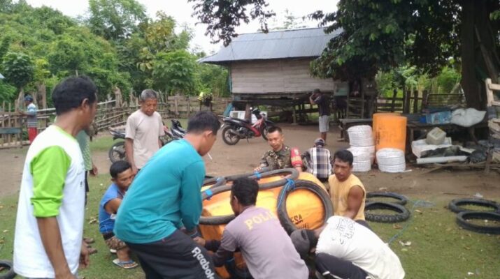 Gentra.co.id –Dompu-NTB. Babinsa Desa Karombo, Sertu Irwan, bersama warga binaannya melaksanakan kegiatan komunikasi sosial (Komsos) di Dusun Ladore, Kecamatan Pekat, Kabupaten Dompu. Dalam kegiatan tersebut, Babinsa dan warga bergotong royong membuat pelampung rupon sebagai alat bantu penangkapan ikan di laut. Jumat (16/05/2025).