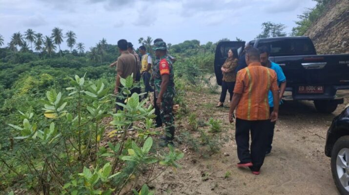 NTT – Sumba Timur, Serma Yohanes Ratu Andung Babinsa Koramil 03/Pahunga Lodu, Kodim 1601/Sumba Timur bersama Dinas Pertanian Kabupaten Sumba Timur dan Pejabat Pembuat Komitmen Balai Wilayah Sungai (PPK BWS) Provinsi NTT, melakukan survey lokasi Penambahan pembangunan saluran irigasi di Desa Lumbu Manggit, Kecamatan Wulla Waijelu, Kabupaten Sumba Timur, Jum’at (23/05/2025)