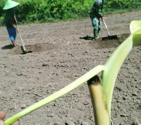 NTT- Sumba Timur, Sebagai upaya mendukung program ketahanan pangan, Babinsa Koramil 05/Waingapu , Kodim 1601/Sumba Timur, Sertu Darusman, turun langsung mendampingi Kelompok Tani Mekarsari yang diketuai Bapak Maraing dalam penyiapan lahan bawang merah di Kelurahan Lambanapu, Kecamatan Kambera, Kabupaten Sumba Timur , Sabtu (14/06/2025)