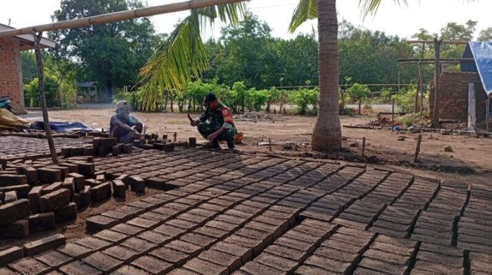 NTT-SIKKA Babinsa Koramil 1603-01/Alok Kodim 1603/Sikka, Serka Arsyad, melaksanakan kegiatan Komunikasi Sosial (Komsos) bersama warga yang merupakan tukang cetak batako di Desa Magepanda, Kecamatan Magepanda, Kabupaten Sikka, Minggu(15/06/2025).