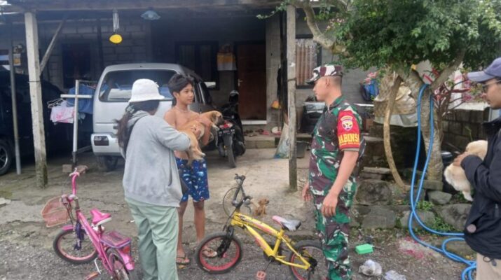 Sebagai bentuk dukungan terhadap upaya pencegahan penyebaran penyakit rabies dan menjaga kesehatan masyarakat, Babinsa Desa Batuan Kaler Koramil 1616-05/Sukawati, Serda I Wayan Puspa Diana, bersama Bhabinkamtibmas Aipda I Wayan Pariana, melaksanakan pendampingan dan pengamanan dalam kegiatan vaksinasi rabies yang menyasar hewan peliharaan warga, khususnya anjing dan kucing, di Banjar Sakah dan Banjar Cangi, Desa Batuan Kaler, Kecamatan Sukawati.