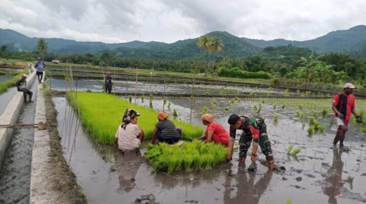 Ende, 14 Juli 2025 — Babinsa Koramil 1602-04/Maurole, Pratu Yudha Santoso, melaksanakan kegiatan penanaman padi bersama Kelompok Tani Sangai Sa’ate 4 di Desa Ranokolo, Kecamatan Maurole, Kabupaten Ende. Kegiatan ini merupakan bagian dari program Han Pangan yang bertujuan membantu masyarakat petani dalam meningkatkan hasil pertanian.