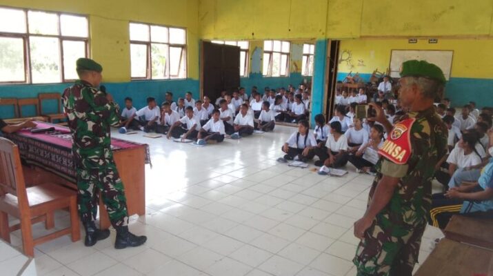 NTT-KUPANG, – Dalam rangka Masa Pengenalan Lingkungan Sekolah (MPLS), Babinsa Koramil 1604-02/Camplong memberikan materi dan pelatihan Peraturan Baris Berbaris (PBB) kepada siswa baru SMAN 1 Amabi Oefeto yang terletak di Desa Fatukanutu, Kecamatan Amabi Oefeto, Kabupaten Kupang. Kegiatan ini dipimpin oleh Serka Luis Zavier bersama Sertu Towo dan Koptu Rony Tipawael, yang berlangsung penuh semangat dan kedisiplinan. Jumat (18/07/2025).