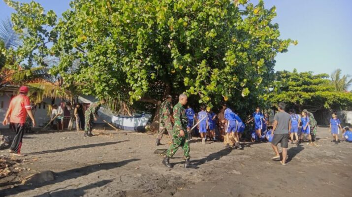 Kegiatan ini dipimpin langsung oleh Danramil 1609-06/Banjar, Kapten Inf. Made Suparsana, dengan pendampingan Babinsa Desa Banjar, Sertu Komang Arjawa. Dengan semangat gotong royong, para prajurit TNI bersama warga setempat memungut sampah plastik, dedaunan kering, dan sisa-sisa limbah yang mengotori bibir pantai.