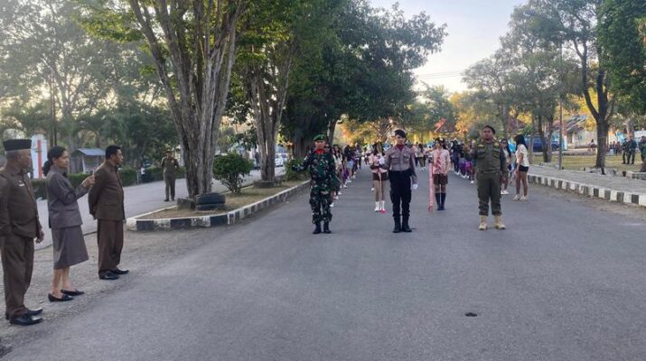 NTT-Kefamenanu., Sabtu, 16 Agustus 2025, suasana Sore di Kota Kefamenanu begitu khidmat dan penuh semangat kebangsaan. Bertempat di depan Rumah Jabatan Bupati TTU, Jl. Yos Sudarso, Kefamenanu Tengah, Kasdim 1618/TTU Mayor Inf Nur Marsudi, mewakili Dandim 1618/TTU, menghadiri kegiatan Upacara Taptu/Pawai Obor dalam rangka menyambut Hari Proklamasi Kemerdekaan Republik Indonesia ke-80 tingkat Kabupaten Timor Tengah Utara.