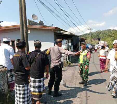 Dalam kesempatan pengamanan tersebut, Babinsa Serka Ketut Sukadana menyampaikan beberapa pesan penting kepada masyarakat dan peserta upacara, khususnya mengenai aspek ketertiban umum. Beliau menekankan perlunya selalu menjaga keamanan dan menghimbau agar penggunaan bahu jalan dilakukan secara bijak, yakni mempergunakan setengah badan jalan saja. Hal ini dimaksudkan agar kegiatan keagamaan dapat berjalan khidmat tanpa menimbulkan kemacetan dan mengganggu pengguna jalan lain.