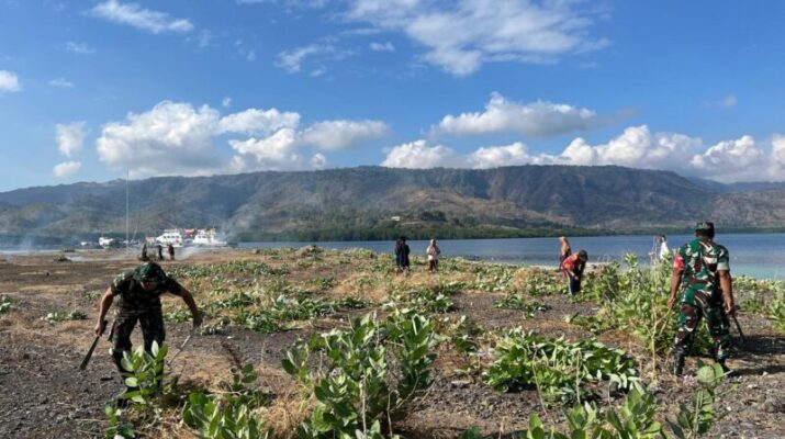 Lembata – Babinsa Koramil 1624-04/Omesuri, Serda Salahuddin dan Praka Juphry, melaksanakan kegiatan monitoring wilayah desa binaan sekaligus komunikasi sosial (komsos) serta karya bakti bersama masyarakat di Desa Balauring, Kecamatan Omesuri, Kabupaten Lembata, pada Rabu (22/10/2024).