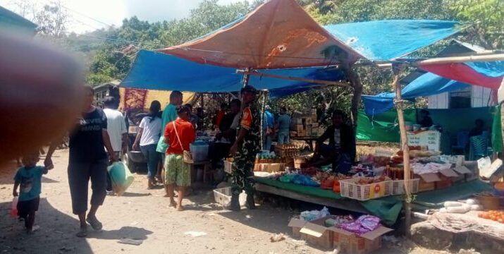 Dalam kegiatan tersebut, Babinsa memantau perkembangan situasi keamanan pasar desa dan memberikan himbauan kepada warga agar tetap menjaga kesehatan, ketertiban, dan selalu waspada saat beraktivitas.