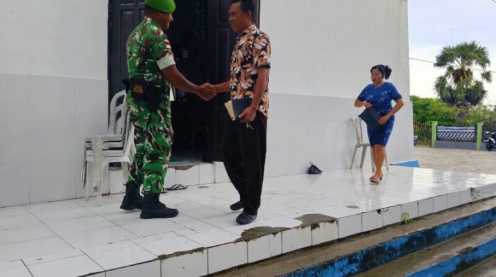 Babinsa Koramil 1627-03/Batutua melaksanakan kegiatan pemantauan dan pengamanan tempat ibadah dalam rangka memastikan pelaksanaan ibadah Minggu berjalan dengan aman dan tertib. Kegiatan tersebut berlangsung pada Minggu, 14 Desember 2025, bertempat di Gedung Gereja Talitakumi Nggauk, Desa Sakubatun, Kecamatan Rote Barat Daya.