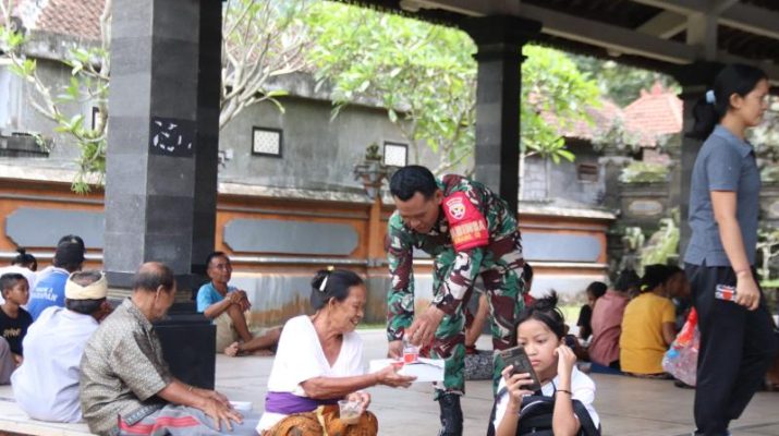 Untuk hari ini kita tetap bersinergi bersama Kodim Klungkung melalui Koramil Dawan, Polsek, Pemcam, Pemdes serta Alumni SD 3 Saraswasti English Class untuk memberikan bantuan Sembako dan dana tunai kepada 30 orang Lansia serta snack dan dana tunai kepada 26 anak-anak beserta 4 orang anak asuh Komunitas Satu Hati di wilayah ini,’ucapnya.