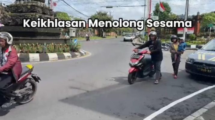 Bangli, Jajaran Satlantas Polres Bangli pada saat mengatur lalu lintas pagi, Kanit Patroli Satuan Lalulintas Polres Bangli Ipda Nengah Bagiadnya membantu Pengendara Sepeda Motor Mogok yang Kehabisan Bensin di persimpangan jalan Catuspata Bangli, Kamis (16/1/25)