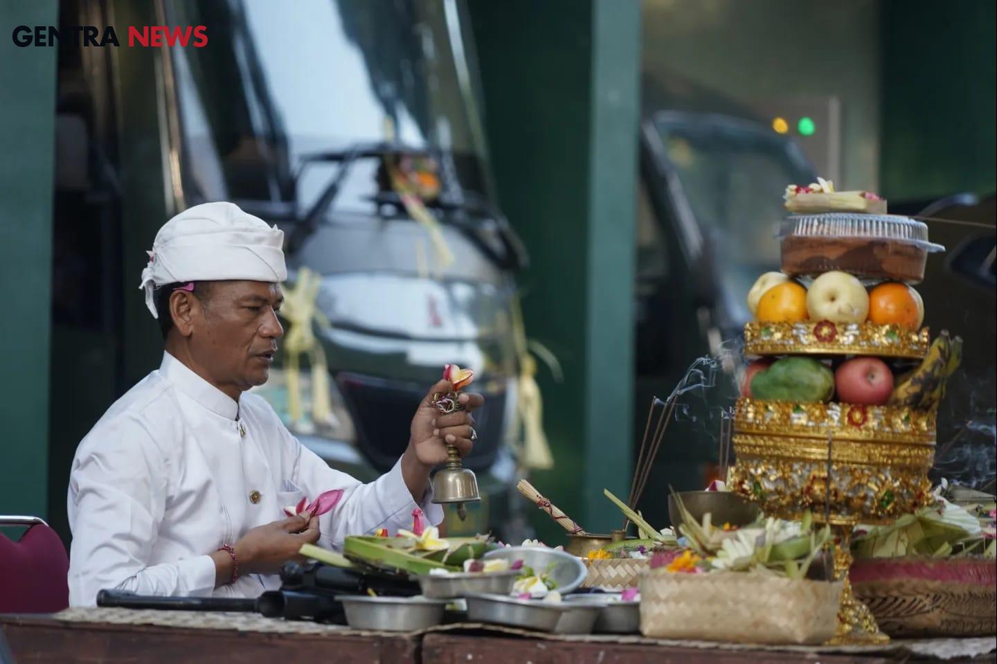 Gentra News Bali-Denpasar – Di Makorem 163/Wira Satya dilaksanakan kegiatan Hari Raya Tumpek Landep yang dipuput (dipimpin) oleh Pinandita Jero Mangku Lettu Inf I Nyoman Wardika dan dibantu oleh Staf Bintal Korem 163/WSA dengan beberapa Umat Hindu Perwakilan Ibu-Ibu Persit Makorem, (9/4/2022).
