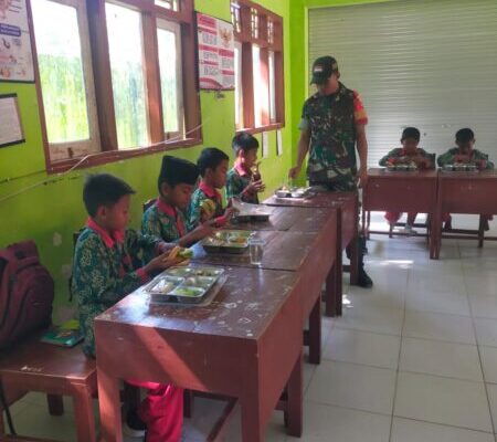 Kegiatan yang dimulai pukul 09.30 Wita ini bertujuan memastikan anak-anak sekolah mendapatkan asupan gizi seimbang untuk mendukung pertumbuhan, kesehatan, dan daya tahan tubuh. Kehadiran Babinsa tidak hanya menjamin kelancaran dan keamanan kegiatan, tetapi juga memberikan motivasi serta pengawasan langsung kepada para siswa.