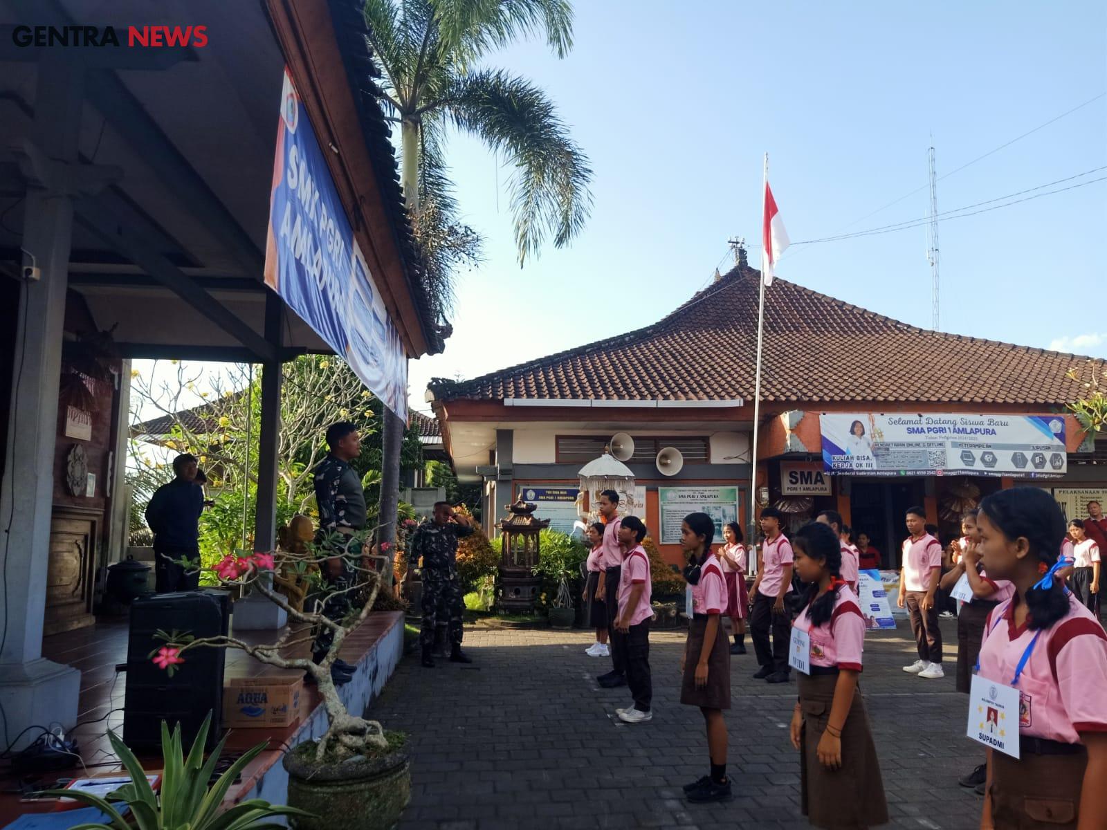 Gentra News Bali – Dua orang personil Kodim 1623/Karangasem dipimpin Serma Ida Bagus Putu Erlin Erdiana memberikan materi PBB bagi Siswa – siswi kelas VII SMA N 1 Amlapura dalam rangka Masa pengenalan lingkungan sekolah (MPLS) di Lapangan SMA N 1 Jl.Ngurah Rai, Kec/Kab.Karangasem pada Jumat (19/07/24)