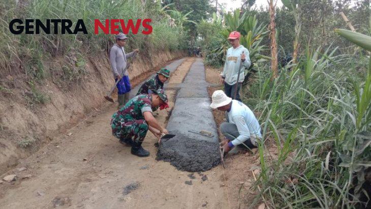 Gentra News Bali, Bangli – Anggota Koramil 1626-04/Kintamani melaksanakan karya bhakti membantu warga melaksanakan rabat beton di Desa Ulian, Kecamatan Kintamani, Kabupaten Bangli, Selasa (8/10/24)