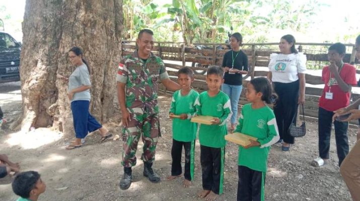 Gentra News NTT – SATGASTER KODIM 1605/BELU, Anggota Satgaster Kodim 1605/Belu Pos Metamauk Kopka Albertus Taek mendampingi Tim Pelayanan Kasih Betun menggelar kegiatan perlombaan kepada anak-anak sekolah SDN Metamauk yang berlangsung di Dusun Weluli, Desa Alas Selatan, Kecamatan Kobalima Timur, Kabupaten Malaka, Rabu (18/12/2024).