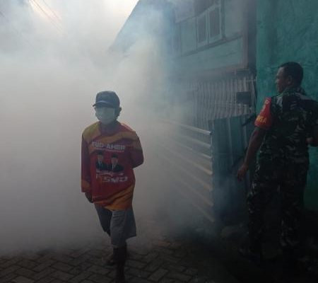 “Adapun kegiatan gotong royong dan fogging difokuskan pada area pemukiman warga yang berpotensi menjadi tempat berkembang biak nyamukâ ucap Sertu Ruslin.