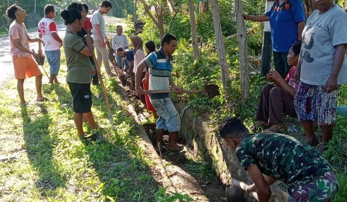 Gentra.co.id NTTĀ – Lembata – Untuk mengantisipasi terjadinya genangan air saat musim penghujan Babinsa Koramil 1624-07/Nagawutung Kodim 1624/Flotim Kopda Kristian BGotong Royong Bersama masyarakat membersihkan saluran air bertempat di Desa Duawutun, Kecamatan Nagawutung, Kabupaten Lembata. Sabtu (11/01/2025).
