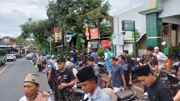 Selain warga sekitar Masjid, ada juga Masyarakat dari wilayah lain yang melintas yang datang untuk menunaikan sholat Jumat, sehingga anggota perlu melakukan pengaturan kendaraan yang keluar dan masuk Masjid.”ucapnya”.