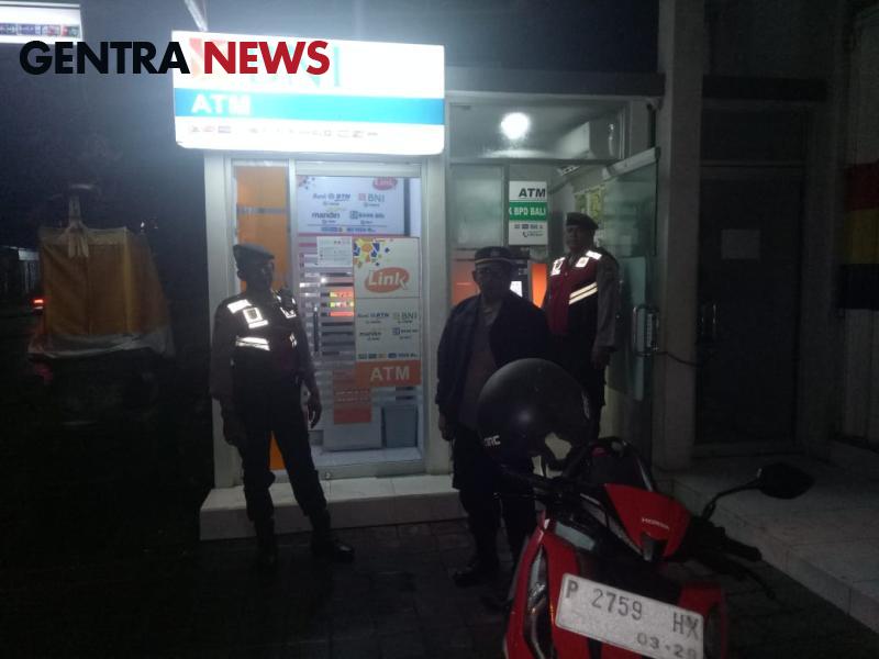 Terlihat personil patroli berhenti di gerai mesin ATM kemudian petugas patroli mengecek kondisi mesin ATM, hal ini untuk memastikan bahwa tidak ada peralatan skimming (alat untuk mencuri data nasabah) yang terpasang pada perangkat mesin ATM tersebut, sehingga aman saat digunakan oleh Nasabah. Hal tersebut juga untuk meminimalisir tingkat kriminalitas yang dapat terjadi disaat masyarakat sedang melakukan transaksi di ruang ATM, sehingga dapat memberikan kenyamanan pada nasabah saat menggunakan mesin ATM.