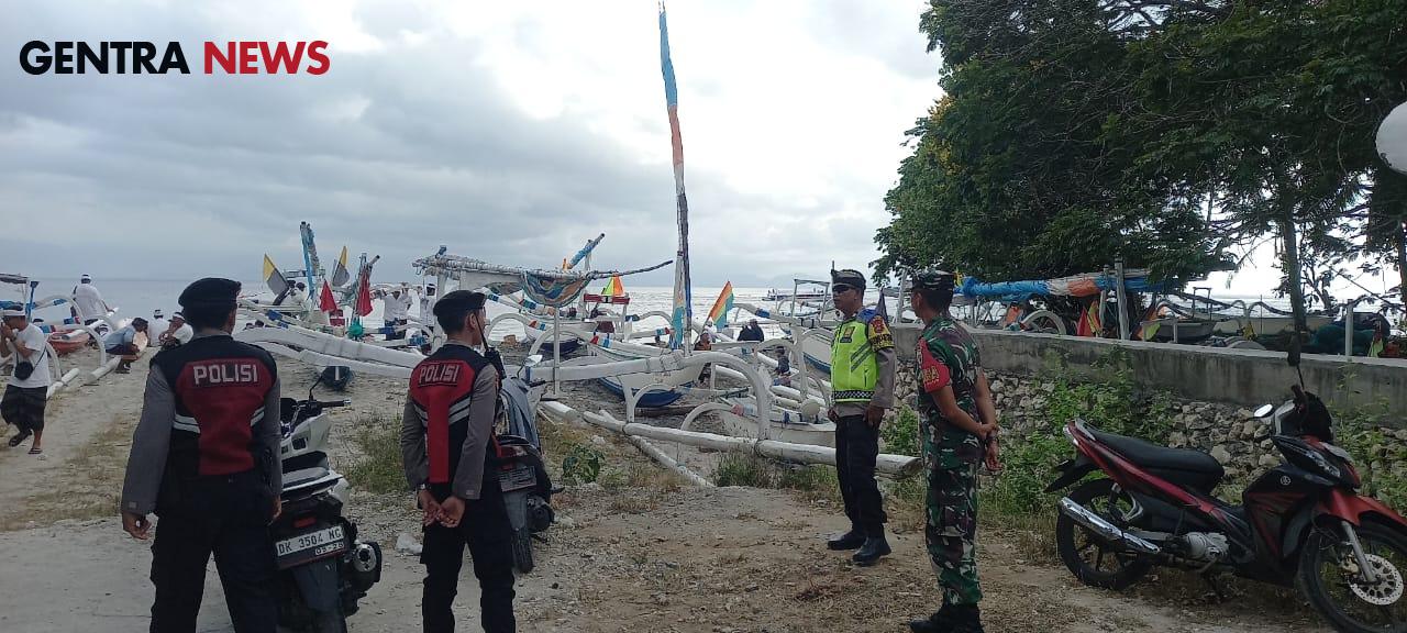 Tampak dalam pantauan Babinsa Klumpu Kopka Kadek Parta bersama Bhabinkamtibmas bersinergi bersama anggota Polsek Nusa Penida dan para pecalang bersama-sama melaksanakan pengamanan.