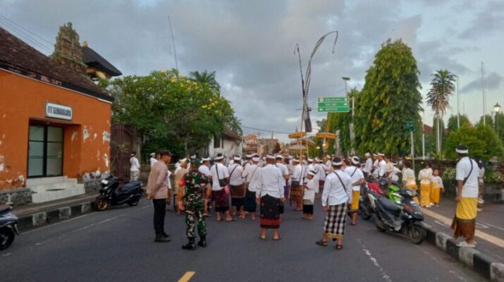 Dalam keterangannya, Babinsa Semarapura Klod Sertu Putu Pariadnya menjelaskan bahwa pengamanan yang digelarnya kali ini dalam rangka upacara piodalan napak pertiwi Ida Sesuhunan Ratu Gede di Pura Kawitan I Dewa Pesawahan Pekandelan.