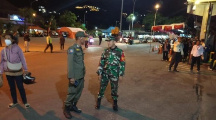 Gentra.co.id Bali – Anggota jajaran Kodim 1623/Karangasem bersinergi dengan Instansi terkait melaksanakan pengamanan dan pemantauan Pasca arus balik H+4 Natal tahun 2024 di Pos Pengamanan terpadu Natal Th 2024 Pelabuhan Padangbai Desa Padangbai Kecamatan Manggis Kabupaten Karangasem, Sabtu (28/12/24)