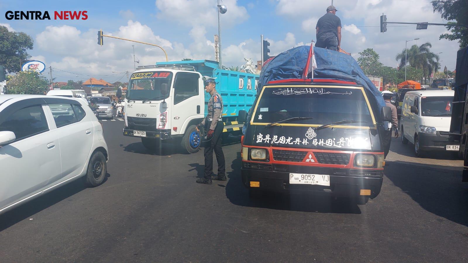 Dipimpin langsung oleh KBO Sat Lantas Ipda I Nengah Suyasa,S.H, Kanit Gakkum Ipda I Gede Artawan, S.H dan BM 04 Bripda Dewa Putu Surya Wibawa langsung melakukan rekayasa arus lalu lintas yang nampak hari ini sangat padat.