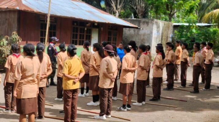 Sertu Damianus Kerhi Ajak Pelajar SD/MIS Fatimiyah Rajin Belajar Lewat Kegiatan Sosial TNI AD