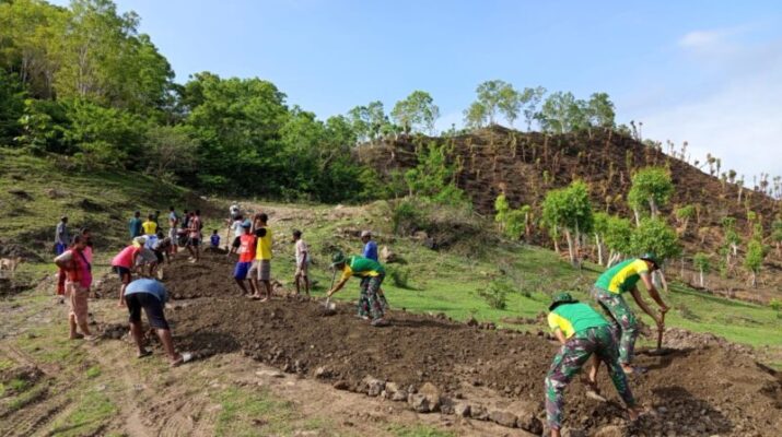 Flores Timur – Babinsa Koramil 1624-01/Larantuka, Sertu Alexandre Soares, terus berperan aktif dalam mendukung program ketahanan pangan pemerintah melalui penguatan sinergitas antara TNI, Polri,