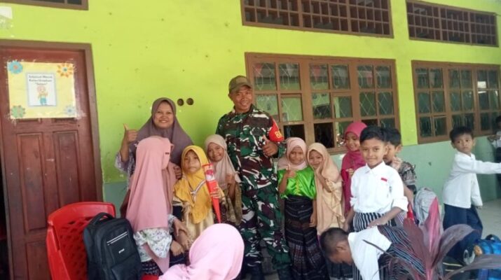Sertu Damianus Kerhi Ajak Pelajar SD/MIS Fatimiyah Rajin Belajar Lewat Kegiatan Sosial TNI AD