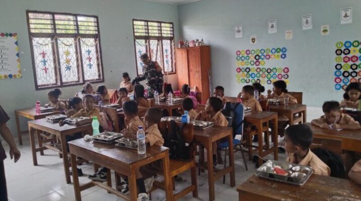 Lembor — Pada Kamis, 8 Januari 2026, anggota Koramil 1630-02/Lembor, Kopda Ahmad dan Serda Arifudin, melaksanakan kegiatan pengecekan pemberian makanan bergizi kepada para siswa
