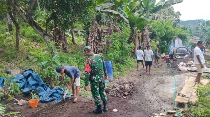 Ende, — Babinsa Koramil 1602-02/Wolowaru, Sertu Muksin, melaksanakan kegiatan Karya Bhakti berupa perbaikan jalan rabat dan Pengamanan Wilayah (Pamwil) bersama masyarakat Desa Serandori, Dusun
