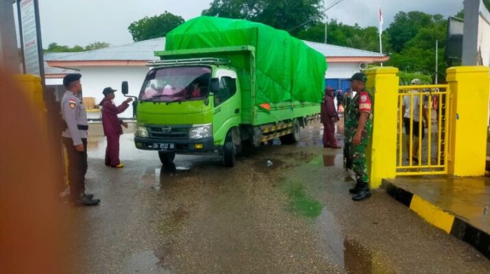 Rote Ndao – Babinsa Koramil 1627-02/Pantai Baru, Serka Haris Lakuy, melaksanakan tugas pengamanan aktivitas bongkar muat Kapal Fery Kalibodri di Pelabuhan Fery Pantai Baru,