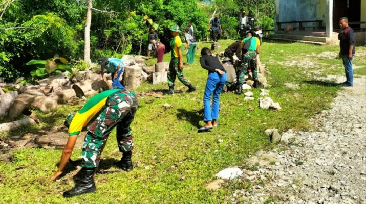 Perkuat Kebersamaan, Satgas RI–RDTL Pos Ailala Turun Tangan Rapikan Kapela Perbatasan