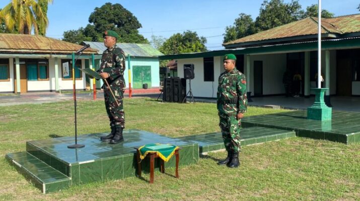 NTT – SIKKA. Kodim 1603/Sikka menggelar upacara rutin pengibaran bendera Merah Putih setiap hari Senin di lapangan apel Makodim 1603/Sikka, Jalan Jenderal Sudirman, Kelurahan