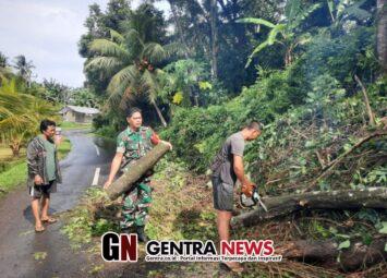 Tabanan – Babinsa Desa Batuaji, Koramil 1619-05/Kerambitan Pelda I Nyoman Setiadi, turut serta membantu membersihkan pohon tumbang di Br. penulisan Desa Batuaji, Kec. Kerambitan yang menutupi akses ...