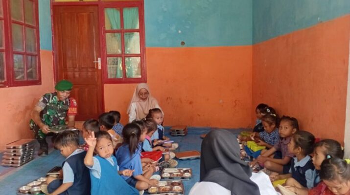 Sumbawa Barat – NTB, Dalam rangka mendukung program pemerintah untuk meningkatkan kesehatan dan gizi anak sekolah, Babinsa Desa Tapir, Koramil 1628-03/Seteluk, Sertu M. Nasir,