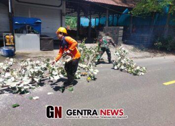 Klungkung,- Semangat penuh kebersamaan dan sinergitas kembali ditunjukkan aparat TNI Polri bersama BPBD Kabupaten Klungkung saat melaksanakan penanganan dan evakuasi pohon tumbang di area jalan raya D...