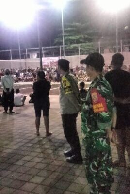 Babinsa Desa Seraya Barat Koramil 1623-01/Karangasem Serka I Made Kompiang Wirasa melaksanakan pengamanan turnamen bola volly dalam rangka HUT Desa Seraya Barat ke 39 tahun, di GOR Serba Guna Desa Seraya Barat Kec/Kab.Karangasem, pada Minggu malam (04/05/25).