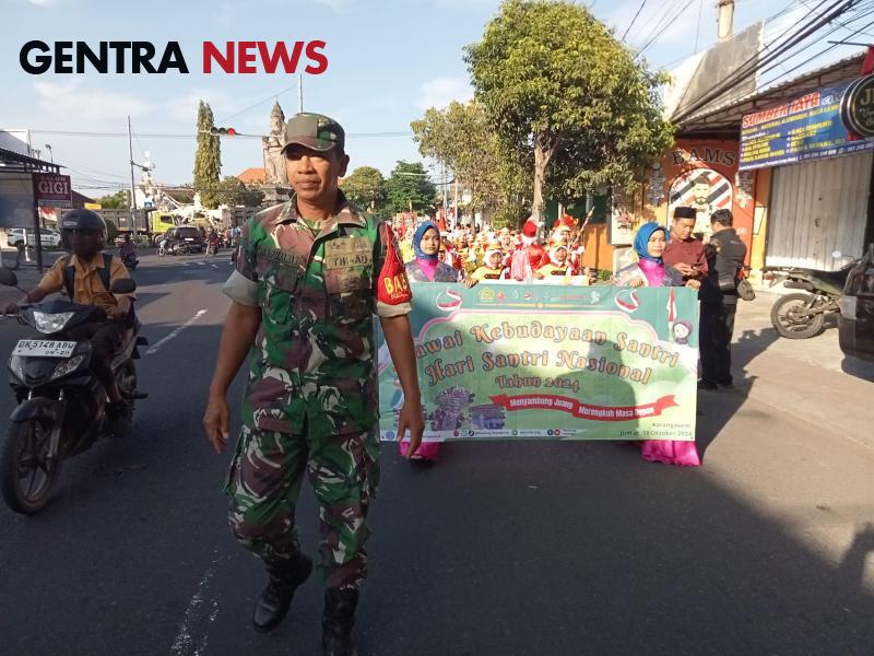 Babinsa 1623-01/Karangasem Turut Amankan Pawai Ta’aruf Rangkaian Kegiatan Hari Santri Nasional Tahun 2024